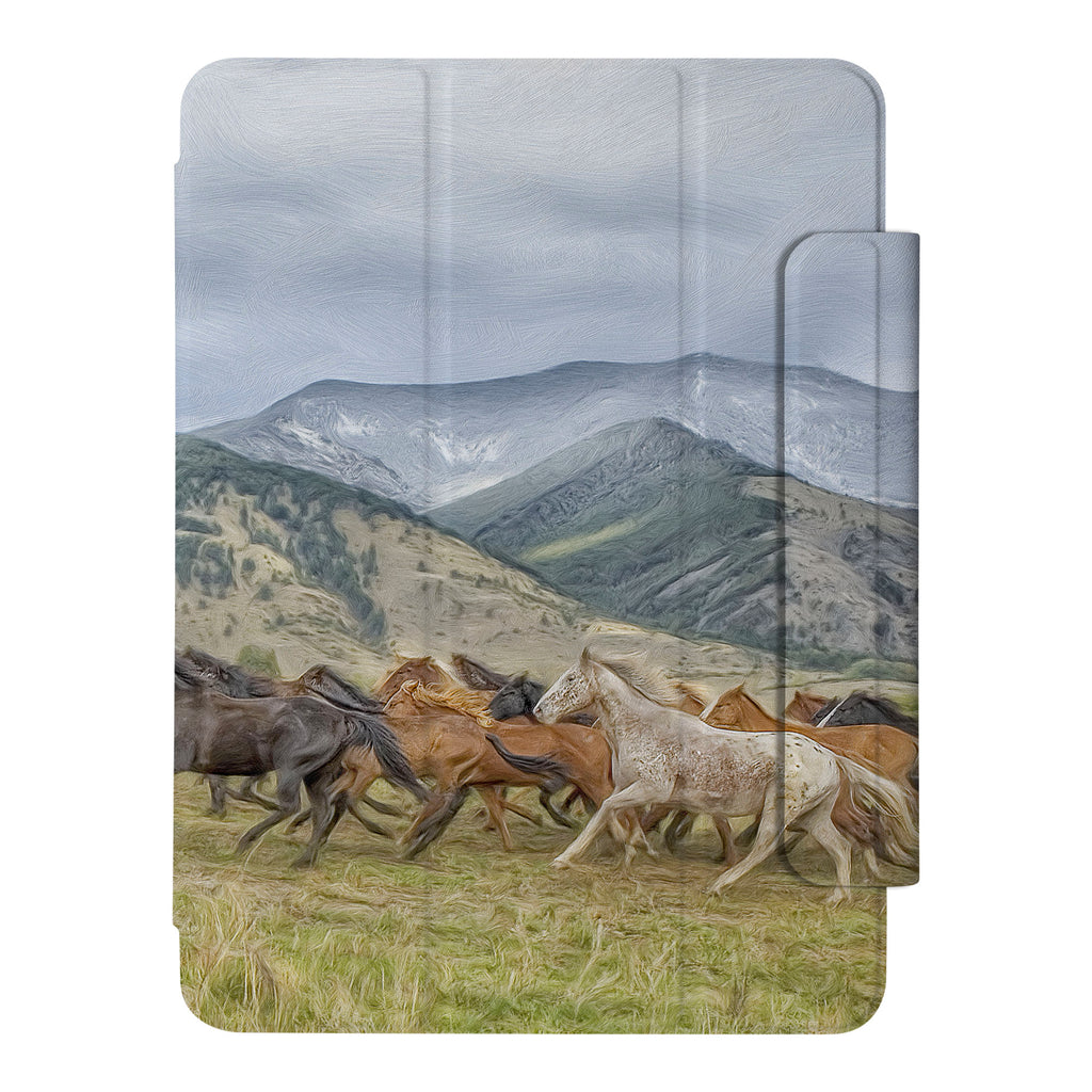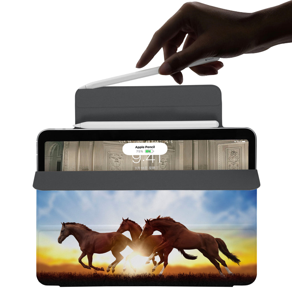Elevate your iPad experience with the VistaCase Personalized iPad Slim Fit Case. Featuring an exquisitely detailed Horse design, this case offers both style and functionality. Crafted with a durable fabric exterior and a soft interior lining, your iPad is protected from every angle. The case includes built-in storage and a cutout for easy magnetic attachment of your Pencil, ensuring it's always within reach.